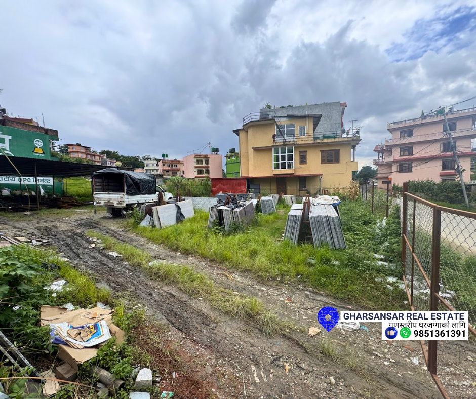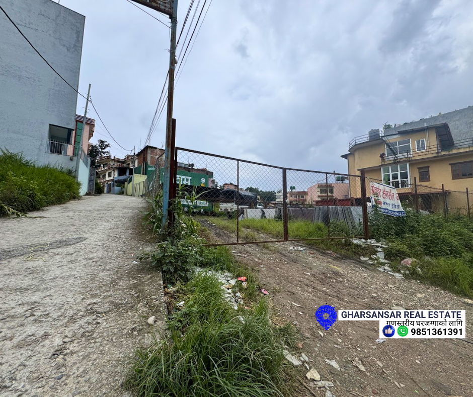🔑 Property Area : 5 aana 📐 Water and Drainage Access 🚗 Distance: Main road 🏡 Facing: West 🛣️ Road Access: 26 ft.