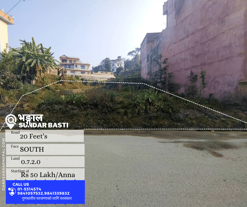 South Facing land touched with 20 feets road access near to valley school is noe available for sale.