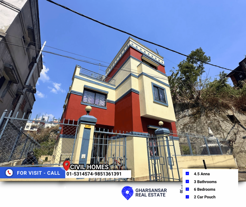Discover your dream home in the peaceful and well-planned neighborhood of Civil Homes, Sitapaila! This 2.5 storey house is built on 4.5 aana of land, offering a blend of comfort and modern living.
