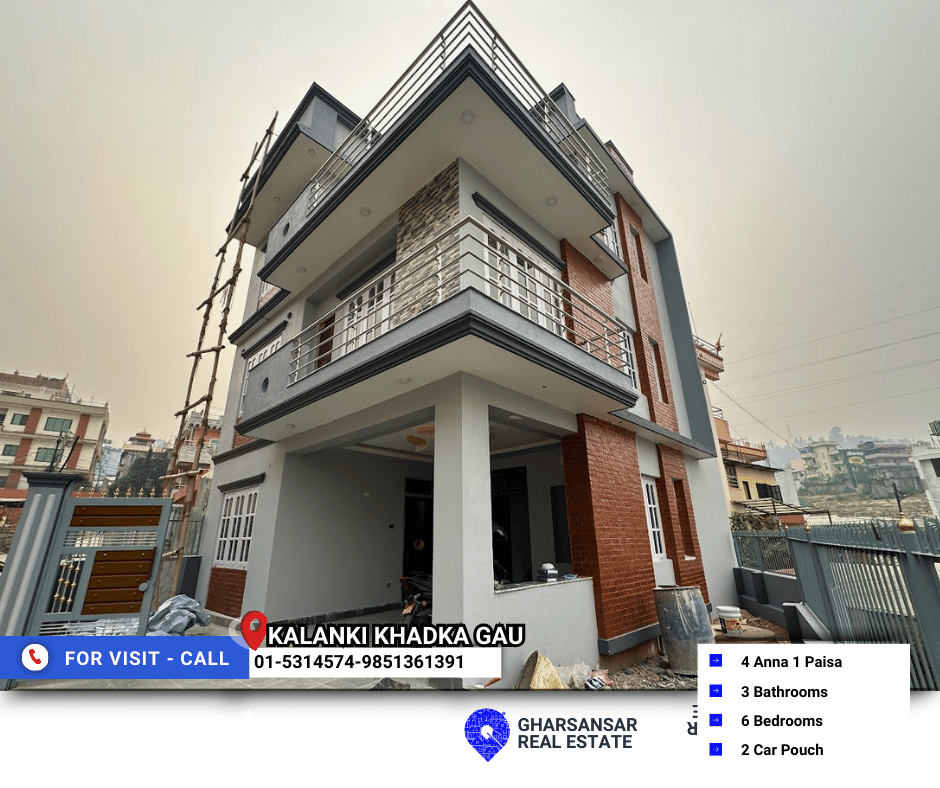 A 2.5-storey house concept home is now available for sale in Kalanki, Khadka Gaun. this house offers modern construction, and a perfect blend of comfort, style, and rental opportunity. Built on 4 Anna 1 Paisa of land, the house spans 2,600 sq. ft., making it ideal for families seeking a peaceful neighborhood with quality amenities.