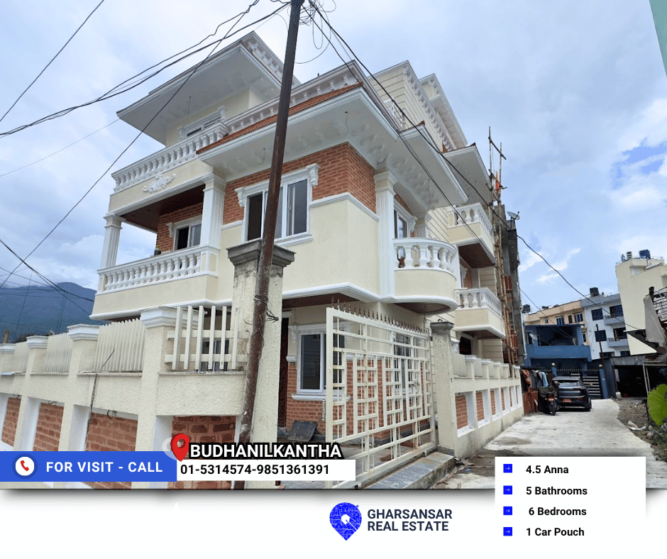Welcome to this 2.5-storey semi-bungalow nestled in the heart of Bhangal, Budhanilkantha. Spread across 5 aana of land and offering 3,000 sq. ft. of built-up area, this modern home is 100% complete — allowing you to add your finishing personal touch.