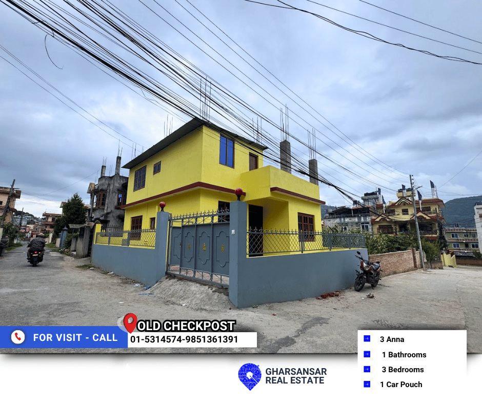 Nestled in the peaceful area of Thankot, Old CheckPost, just 200 meter from Bigmart Ring Road, this 1.5-storey residential home is now available for sale. Sitting on a spacious 3-anna plot, this property offers a cozy and practical living space, ideal for small families or individuals seeking comfort and convenience.
