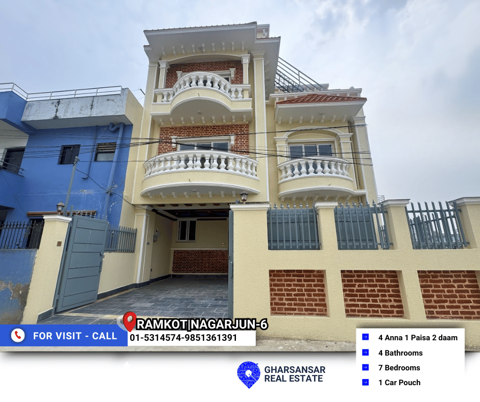 Discover a well-constructed and spacious residential house located in the peaceful and rapidly developing area of Ramkot, Nagarjun–6, just 2 km from Sitapaila Chowk, offering excellent connectivity along with a calm living environment.