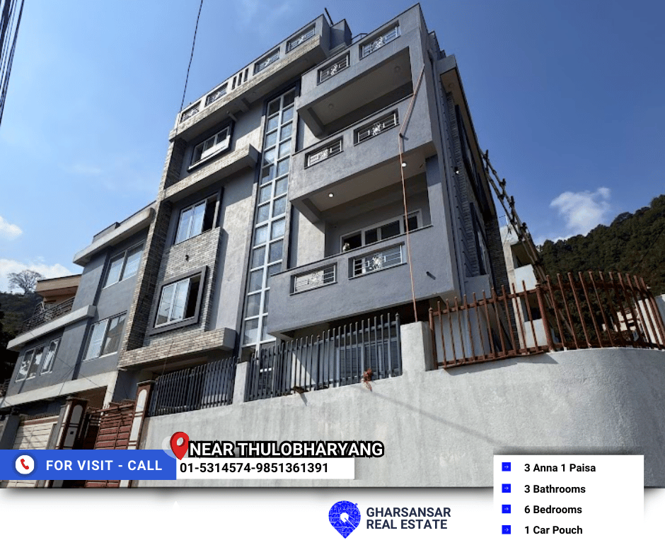 A beautifully built residential house is available for sale near Thulo Bharyang, located in a well-developed and easily accessible neighborhood. This property is ideal for residential living with rental income potential, making it a perfect choice for both homeowners and investors.