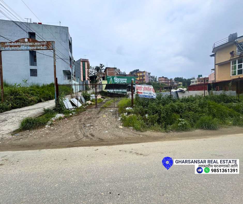 🔑 Property Area : 5 aana 📐 Water and Drainage Access 🚗 Distance: Main road 🏡 Facing: West 🛣️ Road Access: 26 ft.