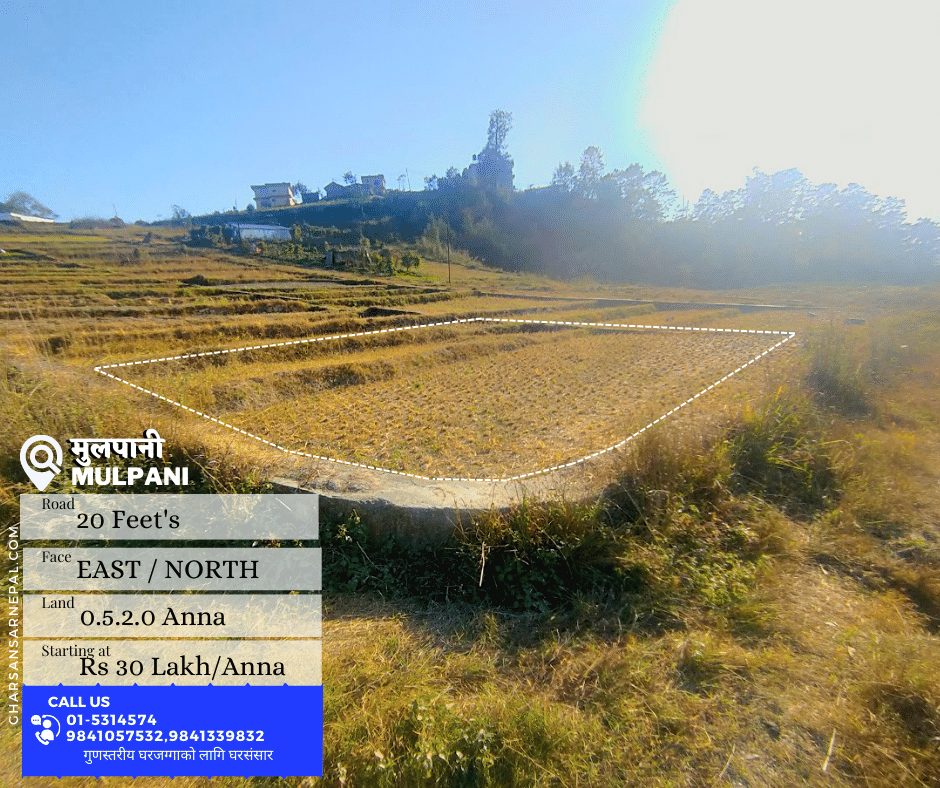 A very beautiful land in the location Bhaktapur area is now on sale where we can see the view o f the valley as well and touched to the main road as well which makes easier to travel and extra other daily needs facilities is also nearby to the place which can make us comfortable.