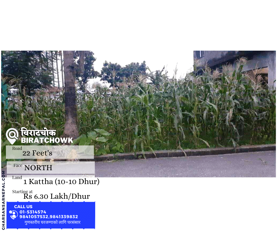 A Biratnagar Land is on sale in which budget is given with 10 Dhur and the price is 63000000 with land area is Kattha. The land is very huge low budget.