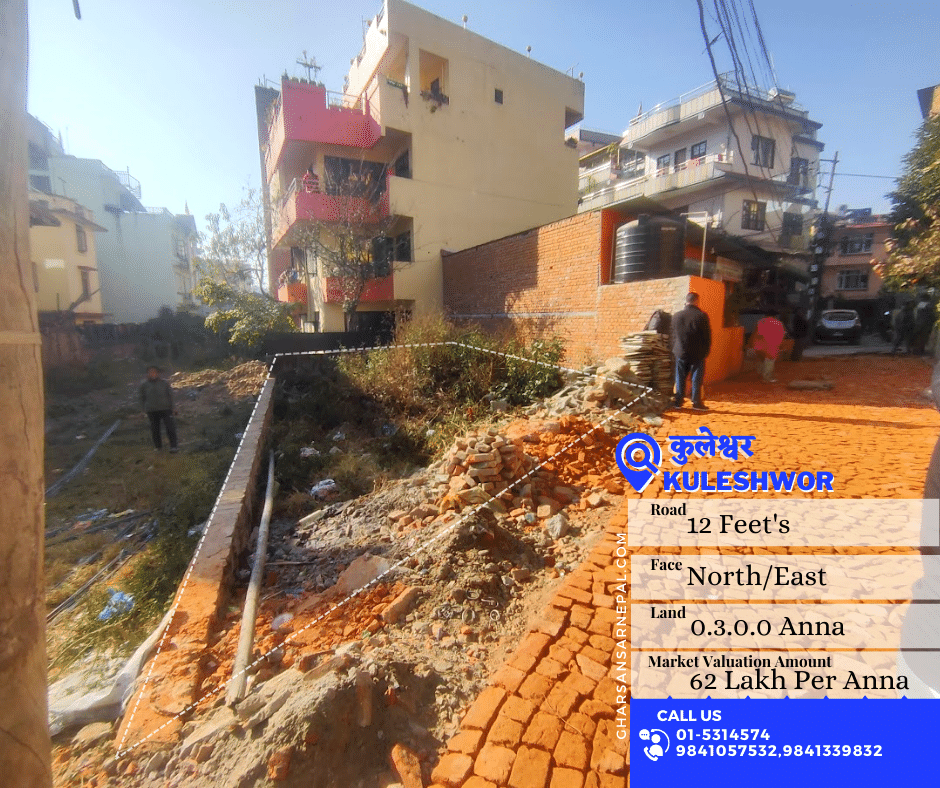 The Kuleshwor land is on sale now facing towards North/east direction having concrete road and 12'ft road access.