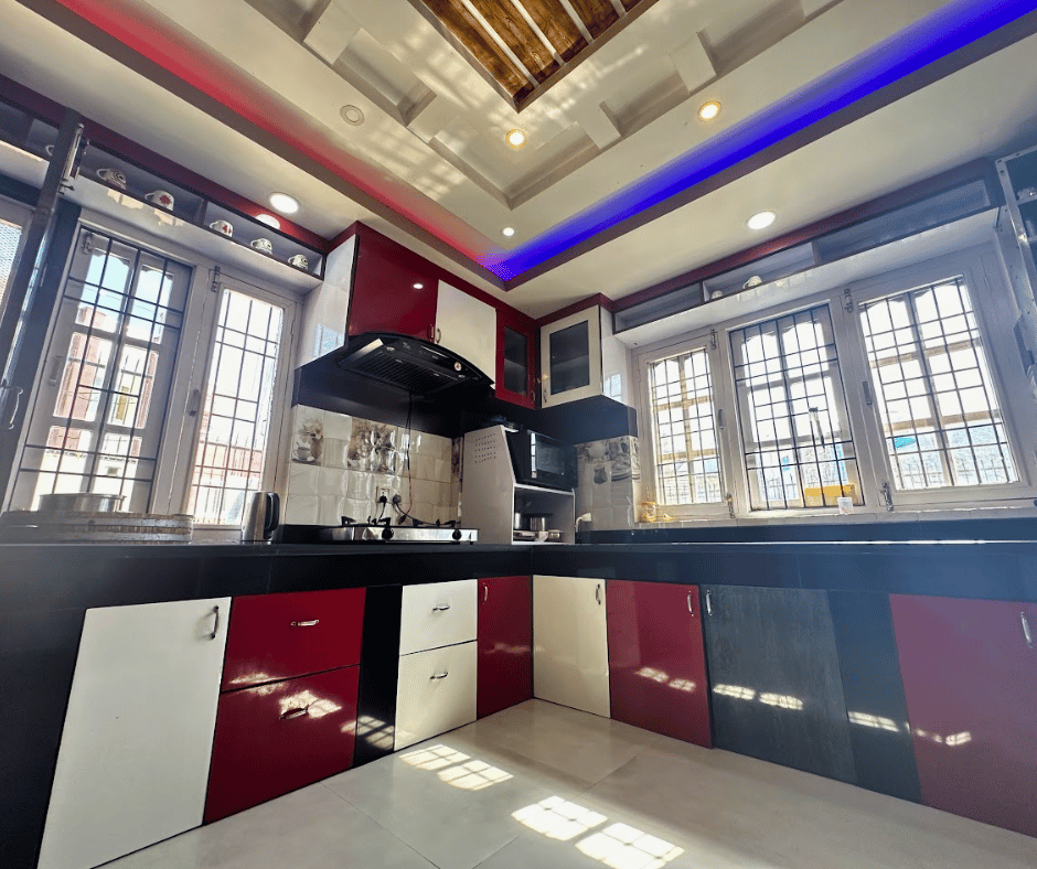 Discover your dream home in the serene neighborhood of Ramkot, just 4 km away from Sitapaila, with easy access only 200 meters inside the Mahankal Mandir. This exquisite property, priced at 4.40 CR, boasts a modern 3.5-storey design facing the west, ensuring stunning views and optimal sunlight.