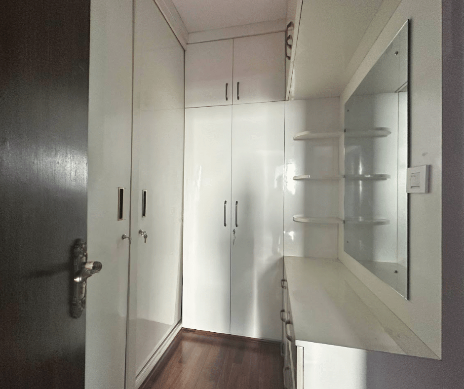 Master bedroom with dressing setup and attached balcony