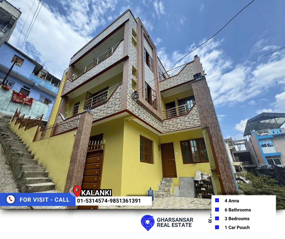 A 2.5-storey house concept home is now available for sale in Sitapaila. this house offers modern construction, and a perfect blend of comfort, style, and rental opportunity. Built on 4 Anna of land, the house spans 2,600 sq. ft., making it ideal for families seeking a peaceful neighborhood with quality amenities.
