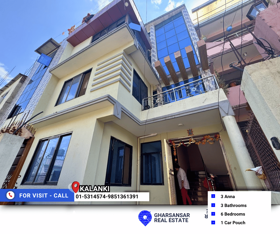 A 3.5-storey house concept home is now available for sale in Kalanki. this house offers modern construction, and a perfect blend of comfort, style, and rental opportunity. Built on 3 Anna of land, the house spans 2,800 sq. ft., making it ideal for families seeking a peaceful neighborhood with quality amenities.