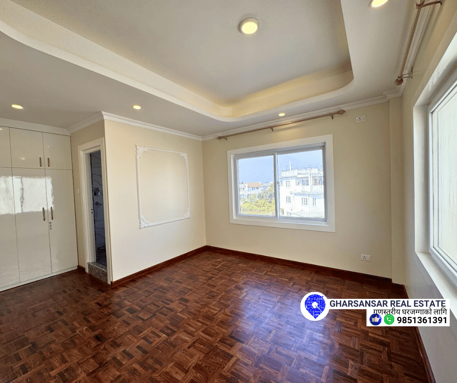 The property is built on a spacious land area of 8 Aana 3 Paisa and enjoys a highly auspicious South-East facing, allowing ample natural light and positive energy throughout the home. It is easily accessible via a 13-feet wide road and offers generous parking space for 3 cars and 5 bikes.