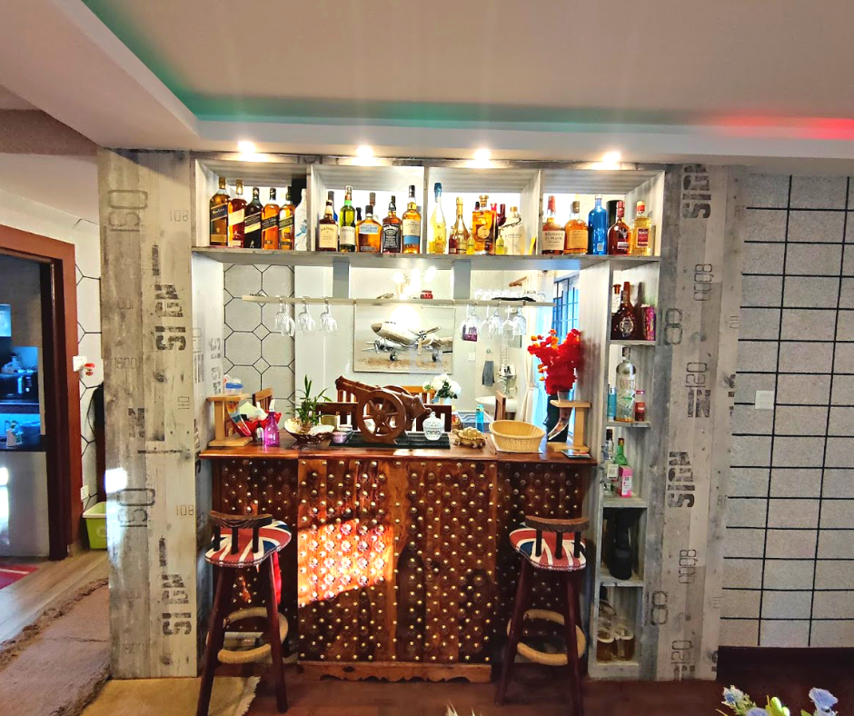 : 1 common bedroom, 1 master living room with bar space, 1 kitchen, 1 dinninf hall and 1 bathroom.
