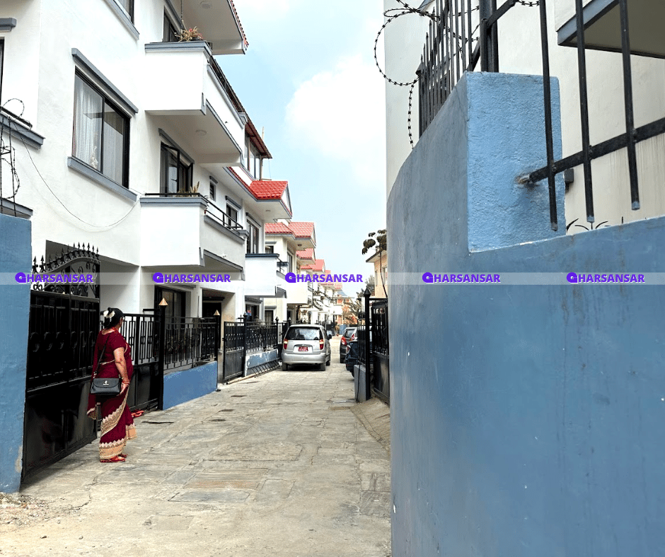 The ground floor features a parking area, a fully-equipped modular kitchen with storage space, and a shared bedroom and bathroom.