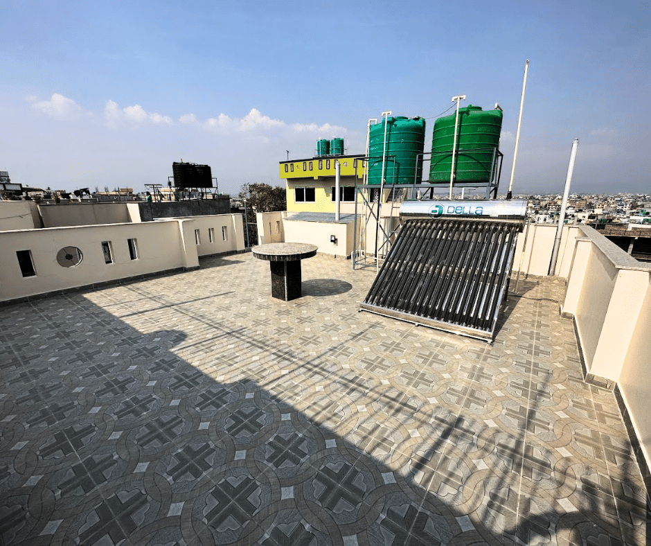 The floor has terrace space, water tank about 1000*2 liters,attached granite table and solar with beautiful view from the top