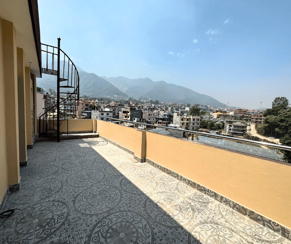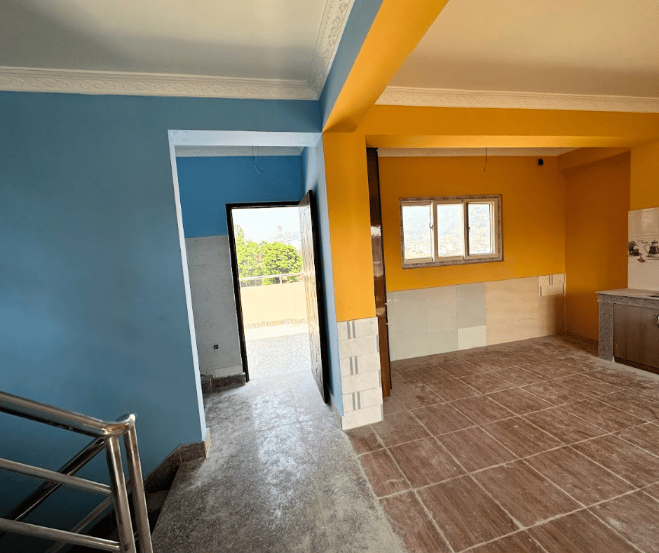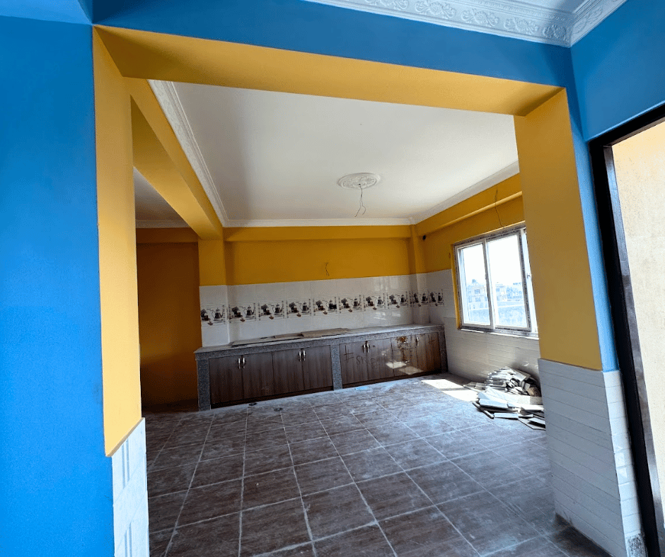 One kitchen space +Dining space ,1 common bathroom and temple space