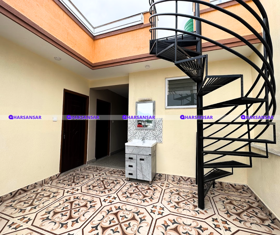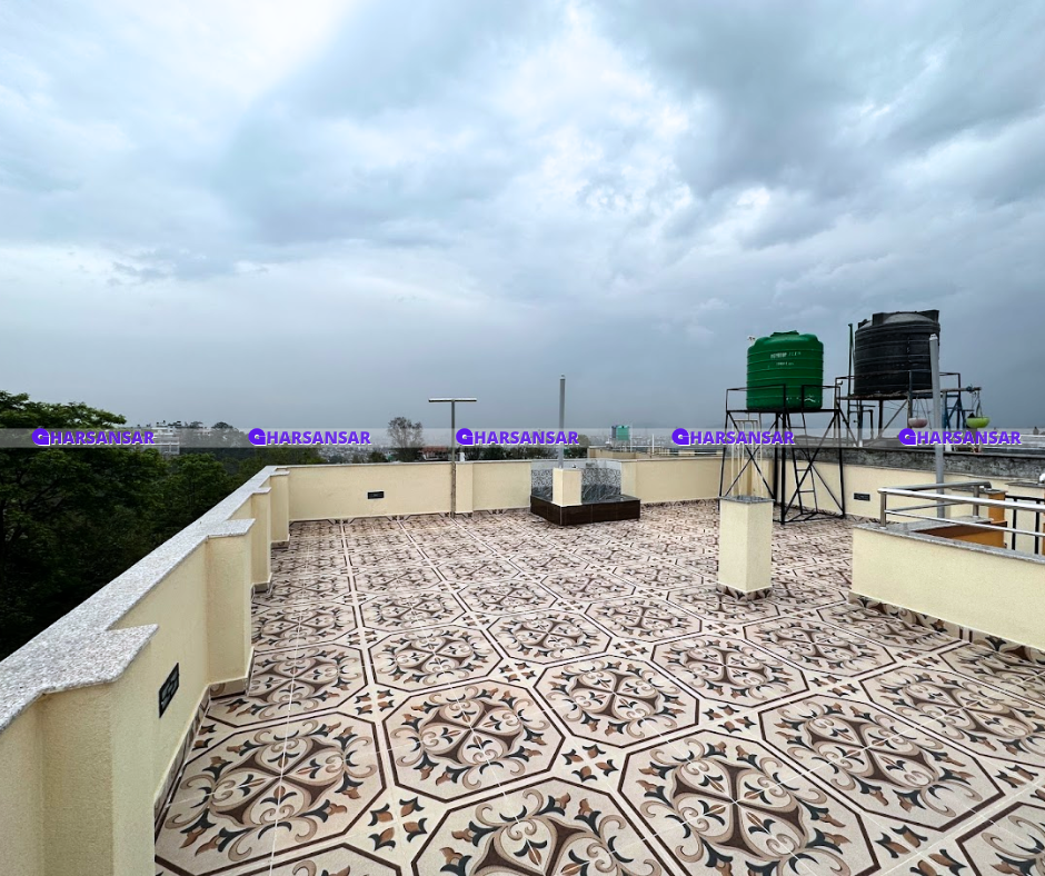 On the top floor 2 tank storage and puja space are available and view of ktm city