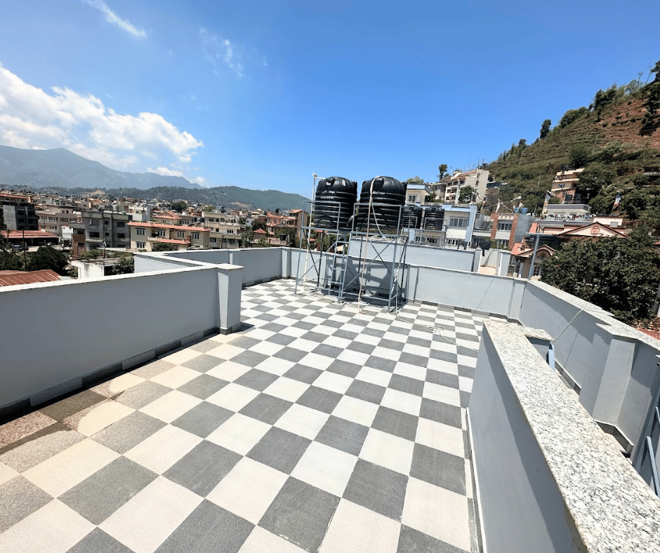 The floor has terrace space, water tank about 1000*2 liters, with beautiful view from the top