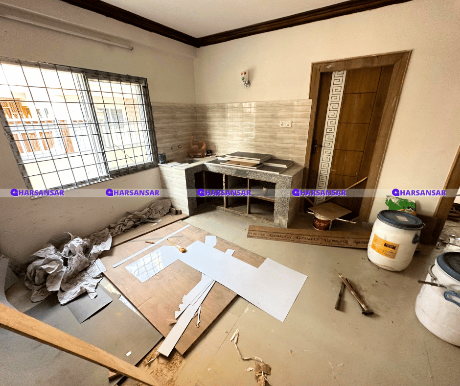 Thus, the floor has modular kitchen setup +dining with attaches balcony,two common bedroom and one common bathroom