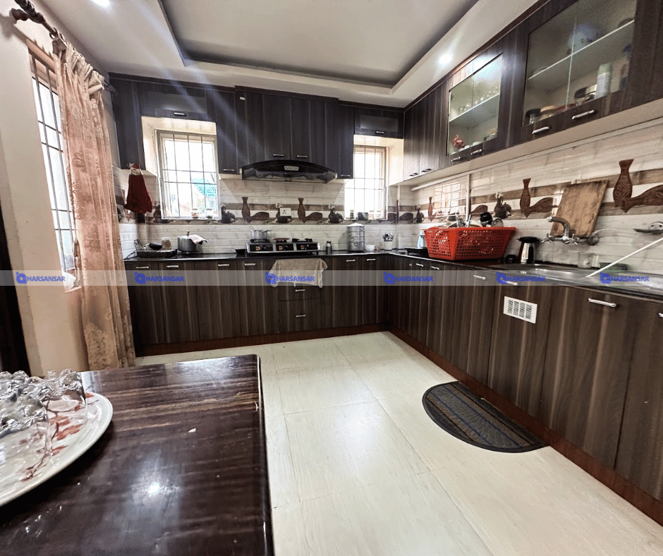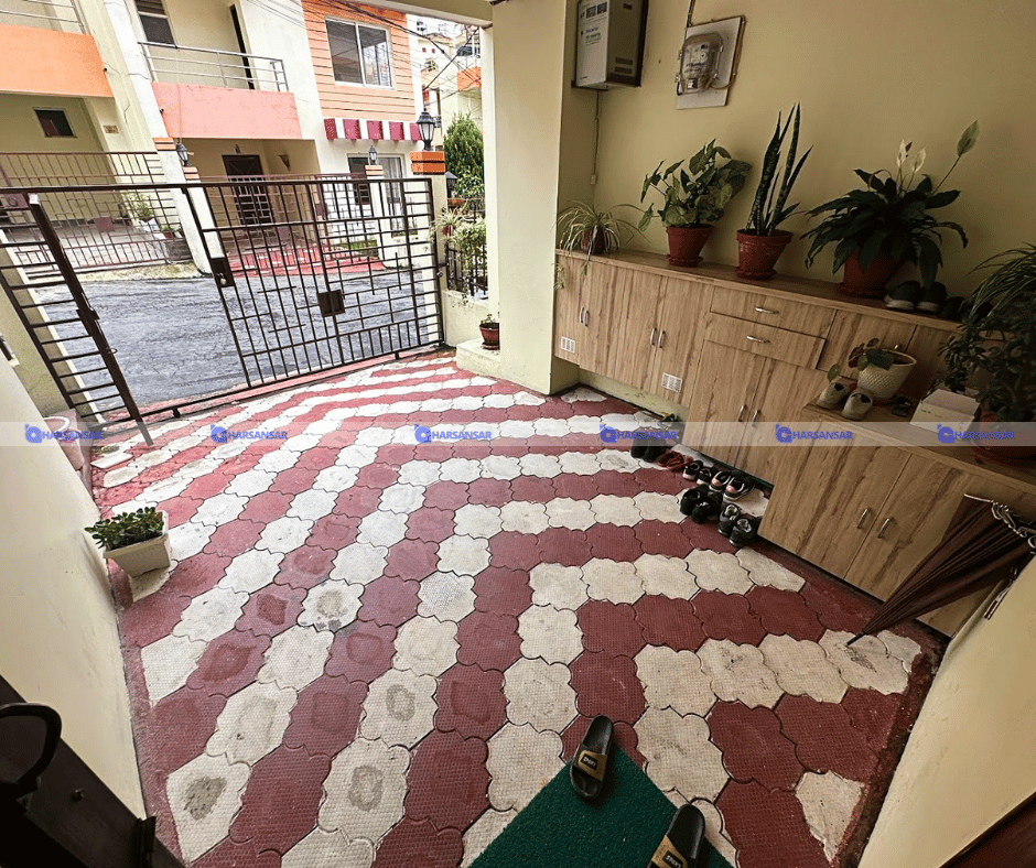 After the steps moving forwards you will get connected to the temple space of the house for daily prayers. On othe side floor has one common bedroom with one common bathroom. And a wide space of lower terrace with the 270 degree view of padma colony space. Water storage space and solar as well.
